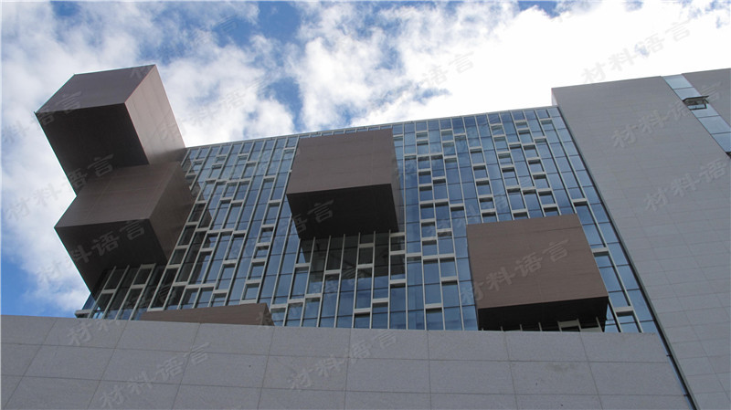 创新点:金属饰面板的独特气质使得它在户外幕墙的运用中更加契台建筑的艺术文化感。同时,木饰面美丽板®耐候性佳可满足强紫外线环境下的建筑装饰运用,兼顾了建筑的艺术视觉要求与品质要求。